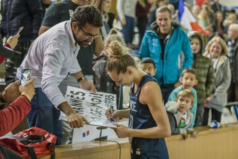 L’internationale de Bourges a visiblement pris la demande avec le sourire. L’histoire ne dit pas quelle case elle a coaché ou… si elle s’est contentée de dédicacer la pancarte.