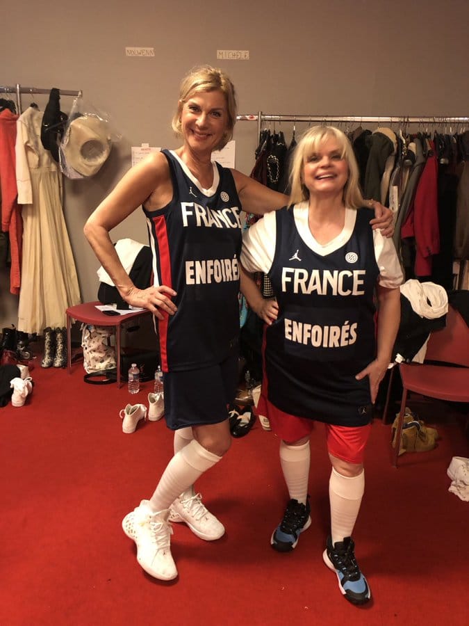 L’actrice Michèle Laroque a rejoint les Enfoirés, ce regroupement d’artistes et de personnalités publiques qui chantent pour les Restos du Coeur. Elle a publié des photos d’elle et de ses compère sur son compte Instagram et sur Twitter. On la voit sur une photo en teasing avec un maillot de l’équipe de France de basket puis sur une autre avec l’ensemble des Enfoirés dont Patrick Bruel -qui s’est fait une rupture des ligaments croisés comme un champion-, Mimie Mathy, Gérard Jugnot, Mc Soolar, Thomas Dutronc, Jenifer… Tous en tenue ! Et au milieu, en maillot blanc, Tony Parker.