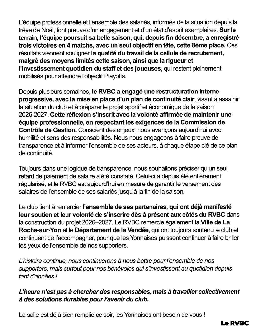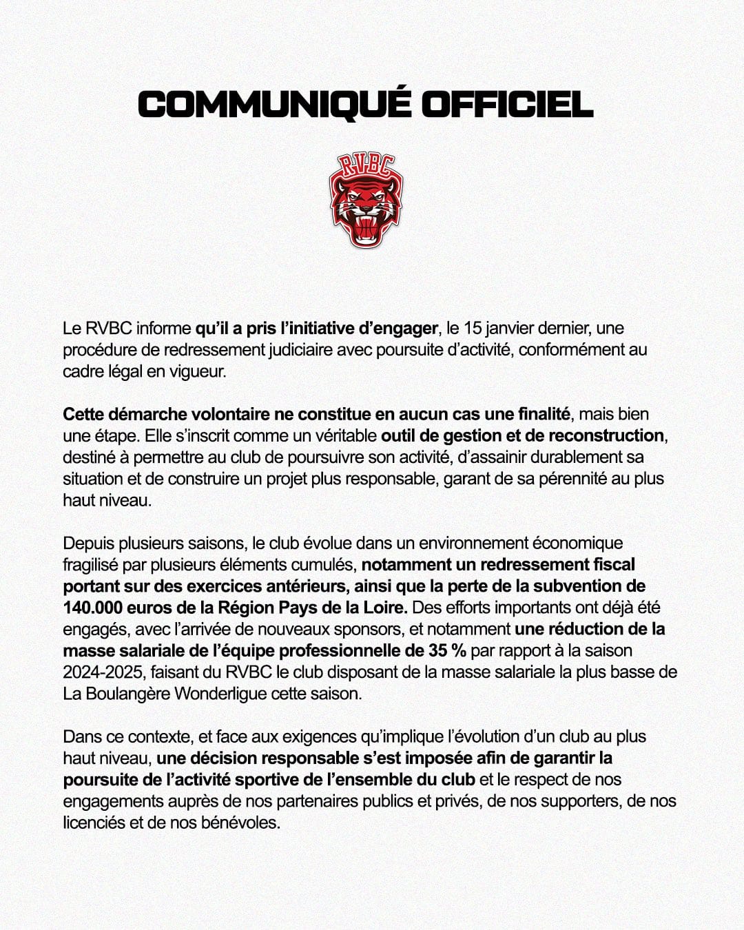 Féminines Féminines : La Roche Vendée placée en redressement judiciaire , and La rédaction 22 janvier 2026