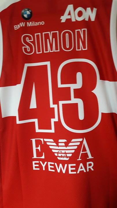 Pour la première d’un maillot italien dans cette rubrique, c’est celui de Krunoslav Simon qui vous est présenté. Passé par Unicaja, Lokomotiv Kuban Krasnodar et aujourd’hui à l’Anadolu Efes Istanbul, il fut champion cette année-là avec l’Olimpia Milano. On retrouve sur la face avant du maillot Emporio Armani 7, EA Time pieces et EA eyewear. Ce sont des marques du groupe Armani, propriétaire du club. Au centre on retrouve le macaron de la “Federazione Italiana di Pallacanestro » et le blason FIP au centre du maillot. Le premier représente le titre de gagnant de la coupe d’Italie et le second le titre de champion d’Italie. D’un côté on trouve Umana, agence d’intérim et de l’autre SAP (Systems, Applications and Products for data processing). En haut à gauche le logo jaune, doré et bleu de la Lega Basket Serie A sponsorisé par la Poste Mobile. Enfin, plus bas au centre, en blanc figure l’écriture Olimpia 1936.