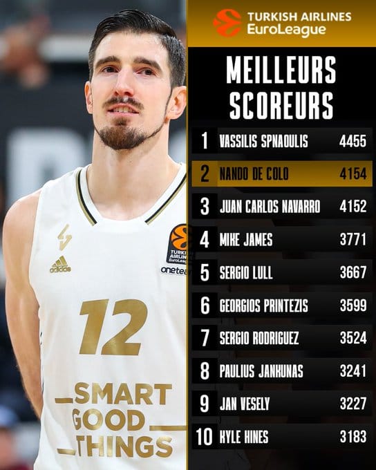 La seule bonne nouvelle de la soirée, c'est que Nando De Colo (4 159 points) est devenu le deuxième marqueur de tous les temps de l'Euroleague, en dépassant l'Espagnol Juan Carlos Navarro. C'est le Grec Vassilis Spanoulis (4 455) qui occupe la pole position. Pas toujours inspiré par ailleurs, Nando De Colo a attendu d'être à 3'35 du buzzer pour obtenir cette marque d'un layup.