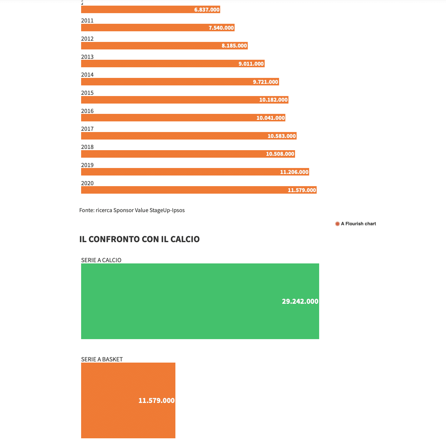 Cela représente une augmentation de 4,7% sur un an et celle-ci est continue depuis dix ans. Par comparaison, le championnat de football, le Calcio, intéresse 29 242 000 personnes.