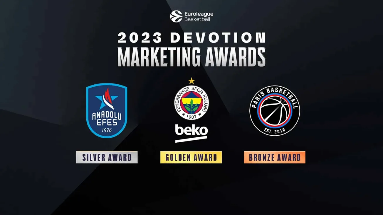 En cette fin d’exercice 2022-2023, ECA dévoile les lauréats de ses Devotion Marketing Awards, qui récompensent les clubs ayant réalisé les campagnes marketing (stratégies numériques, sponsors et développement de la marque) les plus percutantes dans ses compétitions, à savoir l’Euroleague et l’Eurocup. Fenerbahçe a récolté le prix d’or, l’Anadolu Efes le prix d’argent, et le Paris Basketball le prix de bronze dès sa première année en coupe d'Europe.