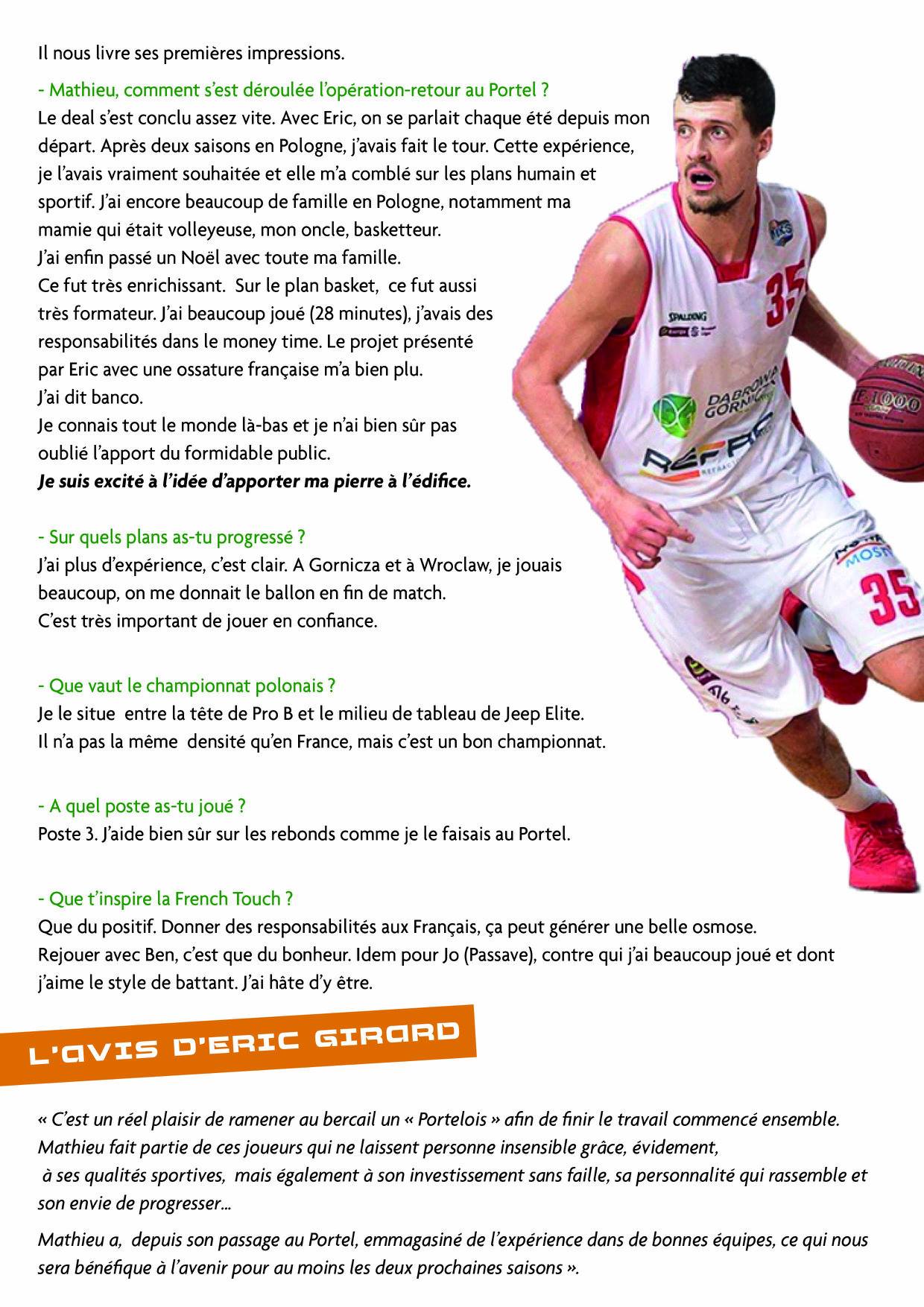 « Le deal s’est conclu assez vite. Avec Eric (Girard), on se parlait chaque été depuis mon départ. Après deux saisons en Pologne, j’avais fait le tour. Cette expérience je l’avais vraiment souhaité et elle m’a comblé sur les plans humain et sportif. J’ai encore beaucoup de famille en Pologne dont ma mamie qui était volleyeuse, mon oncle basketteur », explique t-il.