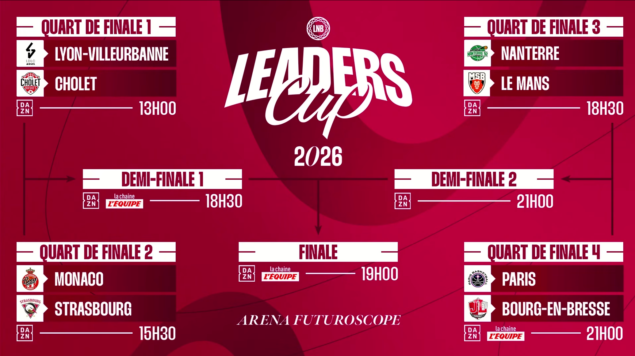 - QF1 : ASVEL - Cholet, le 20 février à 13h00 sur DAZN.