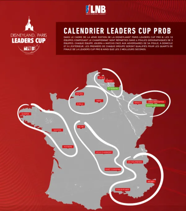 La Leaders Cup Pro B reprendra le 20 septembre et les 18 équipes ont été réparties en 6 groupes géographiques.