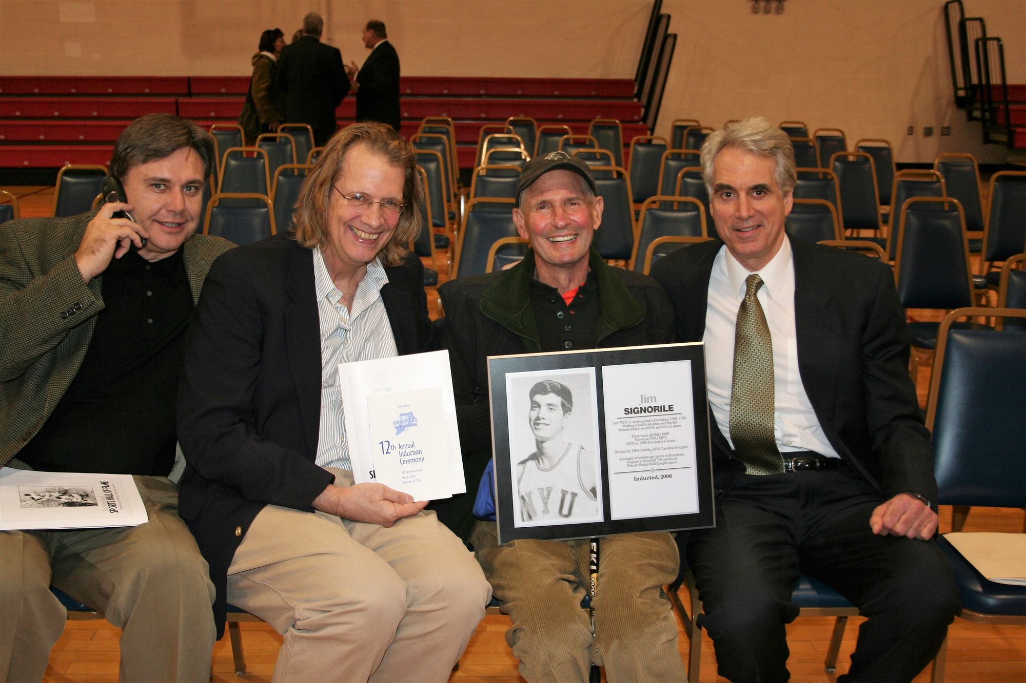 Jim Signorile à droite avec Art Kenney (ex-Le Mans) et l’ancienne superstar des Boston Celtics, Bob Cousy, dans les années 70.