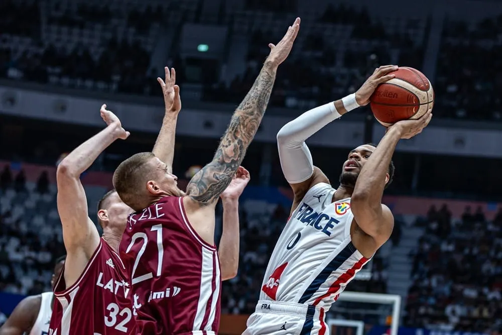 Histoire de se faire du mal, revivons les meilleurs (ou les pires) moments du France-Lettonie synonyme de défaite et d'élimination de la Coupe du monde pour les Bleus.Photo : Elie Okobo (FIBA)