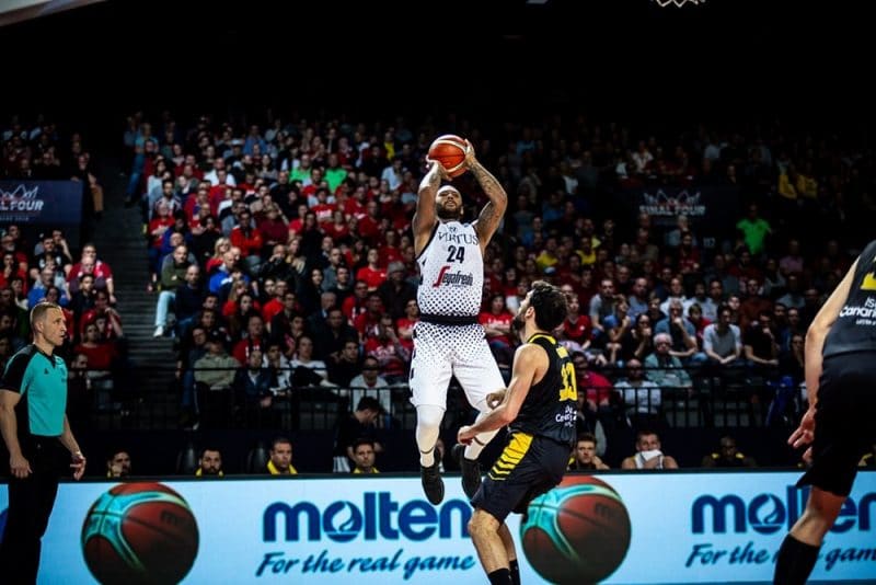 À Anvers en Belgique sur terrain neutre, dans une Arena qui fait le plein pour les quatre matches du Final Four, l’ailier-fort français Amath M’Baye joue un rôle essentiel pour amener la Virtus Bologne au titre. 16 points et 3 rebonds en finale dans un match ultra défensif face à Tenerife (73-61), l’international est le plus gros temps de jeu de son équipe en finale (29 minutes).