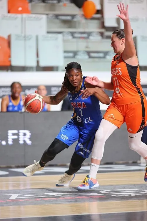 Dans un jeu très alerte, le leadership était un temps partagé, Montpellier devant beaucoup à son arrière-ailière américaine Myisha Hines-Allen (1,88m, 24 ans) dont on comprend très vite pourquoi elle a été élue dans le deuxième cinq All-stars de la WNBA en 2020 -17 points et 21 d’évaluation sur les 37 de son équipe, en première mi-temps. A Bourges, le danger venait de partout notamment du secteur intérieur avec la paire Yacoubou-Mann, si bien que les Tango menaient 44-35 puis 48-41 après 20′.