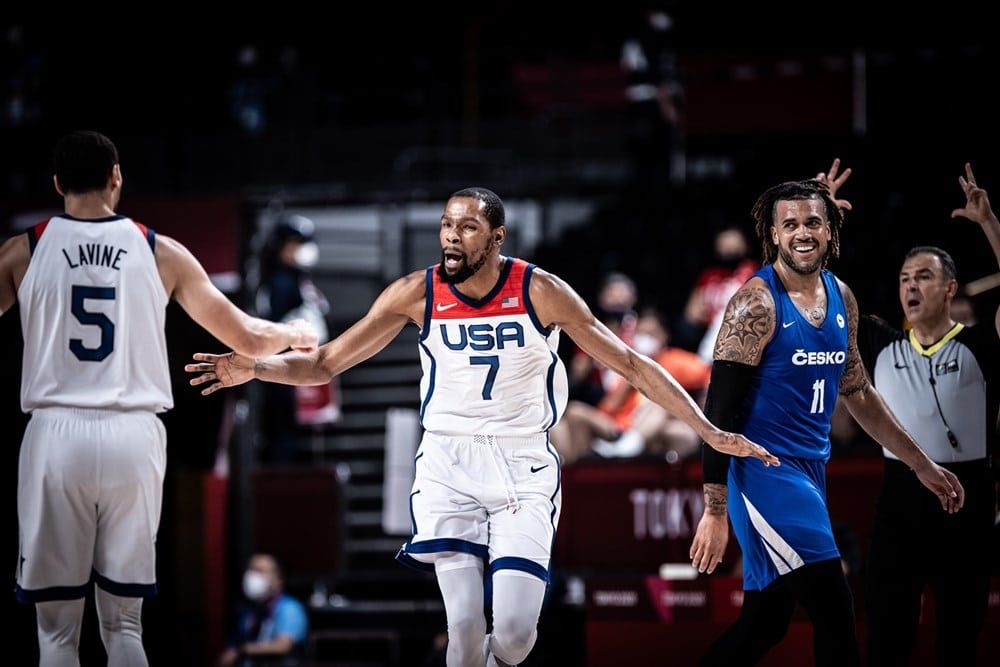 Entre les blessures, les cas de Covid, les trois finalistes NBA arrivés la veille du début des Jeux, les Etats-Unis ont eu une préparation laborieuse ponctuée de deux défaites (Nigéria et Australie) suivie de l’exploit des Bleus mettant fin à une série de 25 victoires olympiques. Pas la meilleure manière d’aborder un nouveau tournoi, donc, mais Team USA a bien réagi en crucifiant l’Iran et la République Tchèque. Les Américains ont lancé leur compétition dans le sillage des performances de Jayson Tatum, Kevin Durant, Damian Lillard ou encore Devin Booker.