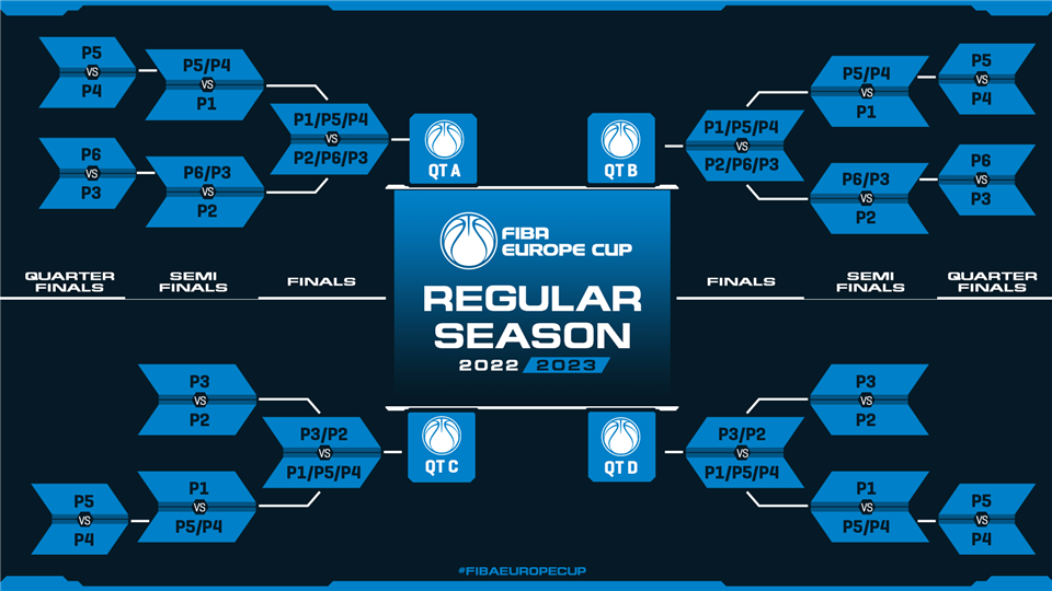 Les vainqueurs des demi-finales s’affronteront dans quatre duels, les équipes qui remportent les finales rejoignant la saison régulière de la FIBA Europe Cup.