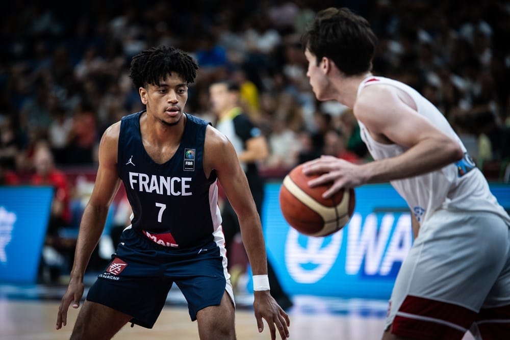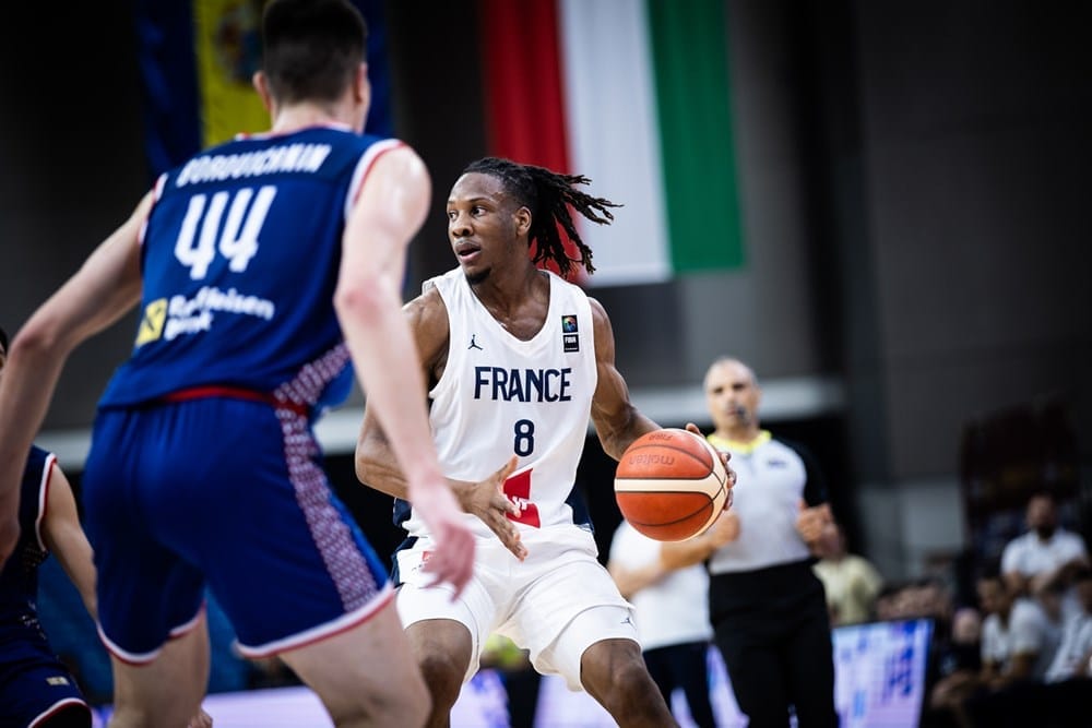 Zaccharie Risacher : Il faut rappeler qu'il sort d'une saison où il a pris beaucoup d'expérience avec l'ASVEL, où il a joué quelques minutes en Euroleague avec les professionnels... mais des minutes, il lui en manquait aussi. Il a moins joué en fin de saison avec l'ASVEL lors des matches plus importants et il est arrivé un petit peu en manque de confiance. Il fallait corriger cela pendant la préparation et au final il fait une belle fin de compétition, notamment en demi-finale contre les Etats-Unis (13 points en 16 minutes, ndlr). C'est un potentiel énorme pour le futur du basket français, j'en suis certain. N'oublions pas qu'il a été ciblé par les adversaires durant la finale mais il a laissé les attaques pour ses coéquipiers et s'est concentré sur la défense. Il a fait le travail pour l'équipe, toujours avec le sourire, à encourager... Des choses qui n'apparaissent pas statistiquement mais pour un joueur né en 2005, cela a été une compétition de très haut niveau. C'était un statut nouveau pour lui et cette compétition le fera grandir pour le futur.