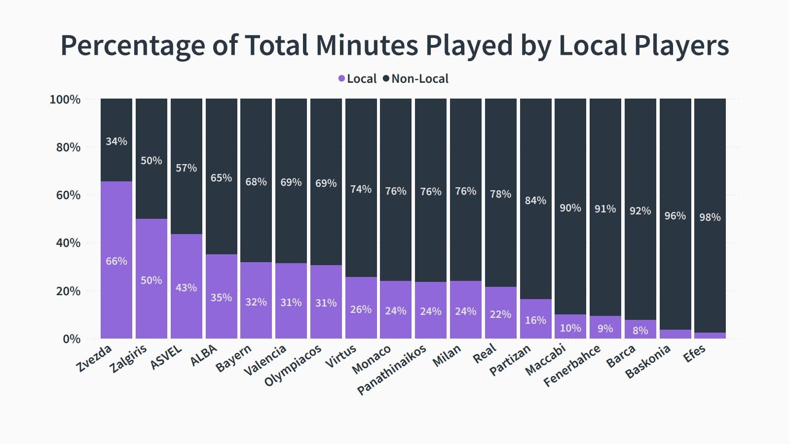 Au dernier pointage du statisticien Darius Garuolis, l'ASVEL est le troisième club de l'Euroleague qui fait le plus confiance à ses Joueurs Formés Localement derrière l'Etoile Rouge de Belgrade et le Zalgiris Kaunas. L'AS Monaco est dans la moyenne.