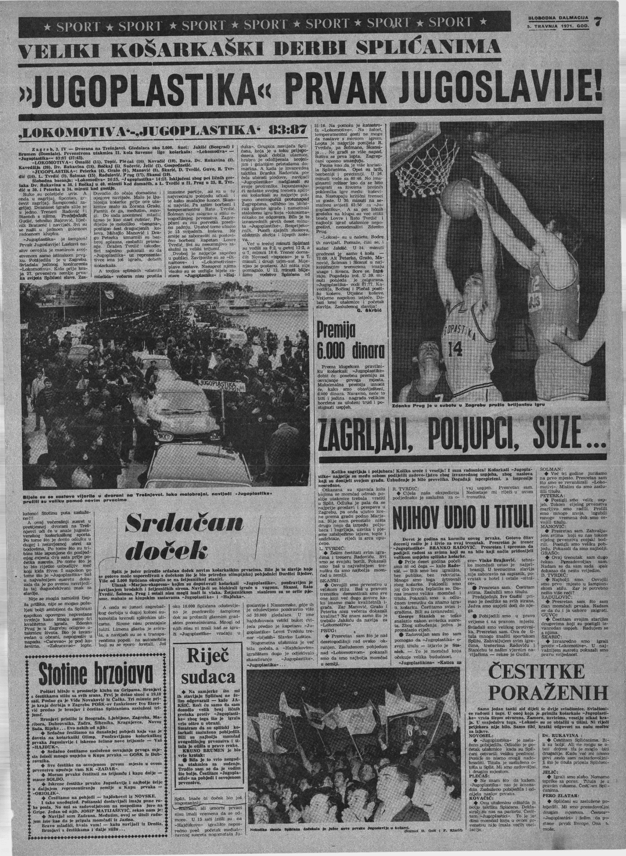 Le club de Split, qui a porté le nom de Jugoplastika de 1967 à 1990, a révélé Toni Kukoc, Dino Radja, Velimir Perasovic, Goran Sobin, Zan Tabak, Luka Pavicevic et quelques autres. Les habitants de la ville ont réservé un véritable triomphe romain à leurs héros de retour de nuit de Munich à l'occasion de la première des trois couronnes consécutives. Plus de 100 000 fans étaient sur la route qui mène de l'aéroport jusqu'à Grip, alors que la population de la municipalité n'est que de 178 000 habitants.