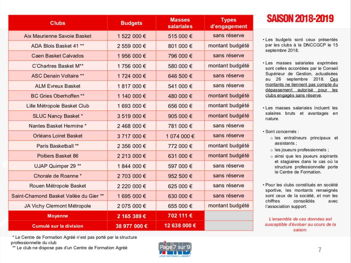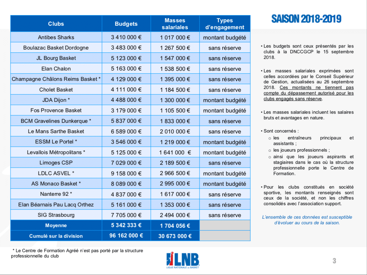 Comme chaque début de saison, la LNB dévoile les différents budgets et les masses salariales des clubs professionnels.