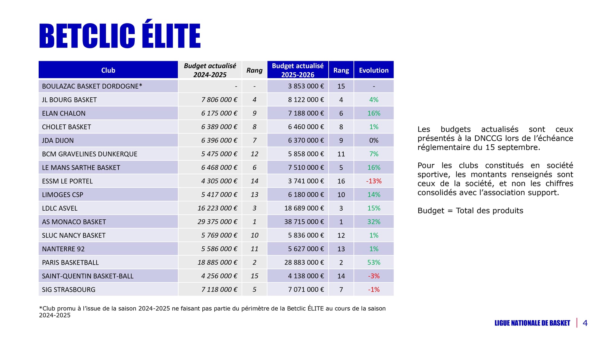 Les budgets prévisionnels 2025/26 en Betclic Élite