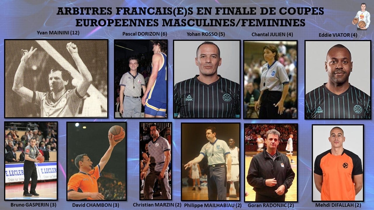 Il s'agit de la deuxième finale européenne Mehdi Difallah après la finale retour d'Eurocup 2018 entre Darussafaka et le Lokomotiv Kouban. Yvan Mainini est le numéro 1 toutes catégories avec 12 finales.