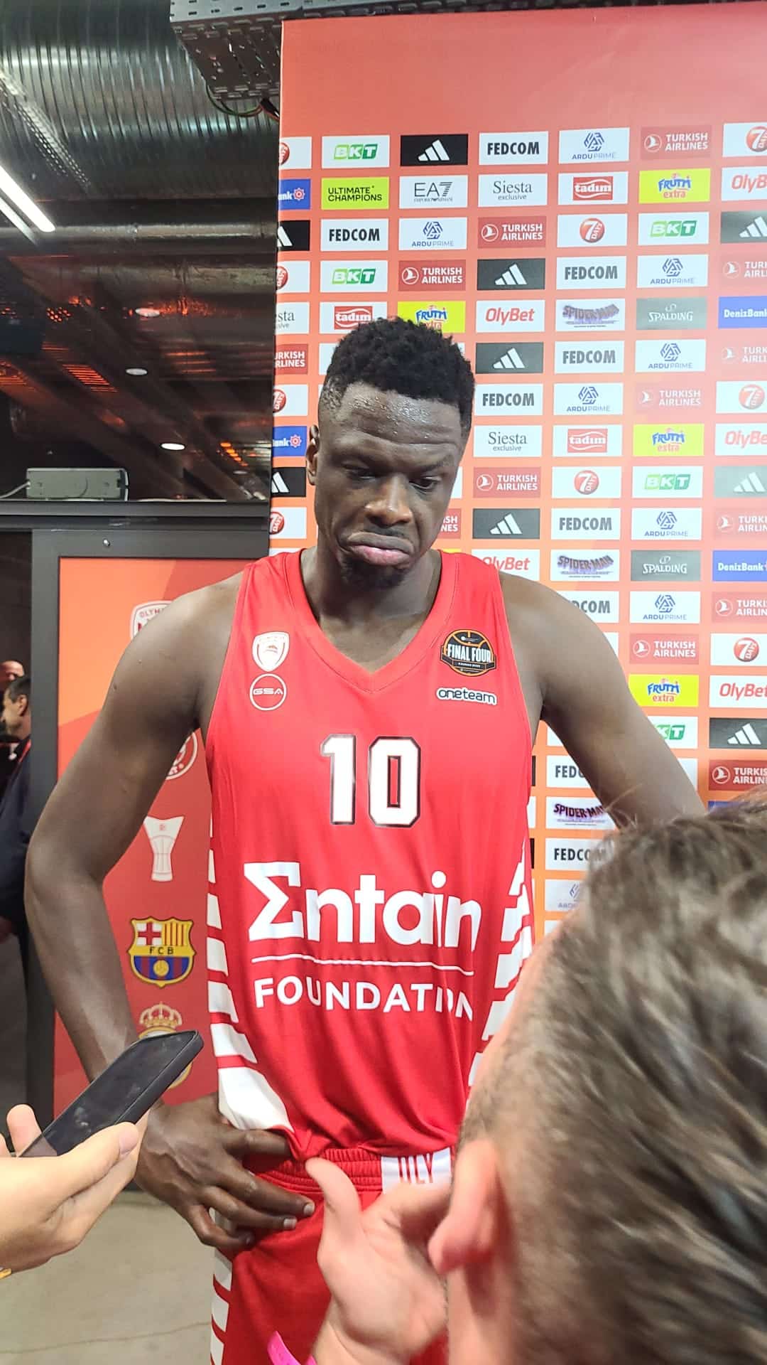 Moustapha Fall, pivot de l’Olympiakos (12 points à 5/6 aux tirs, 4 rebonds, 4 passes pour 18 d’évaluation et un +/- de +18 en 28 minutes) : « À la mi-temps, tout le monde a parlé dans le vestiaire. Kostas Papanikolaou a parlé, le coach a parlé, j’ai parlé. On s’est motivés et le groupe a suivi. Si on perdait de la manière qu’on jouait en première mi-temps, on savait qu’on allait le regretter. On ne méritait pas de tomber comme ça après la saison qu’on a fait. Tout le monde s’est remis en question, s’est relâché. On a réalisé que la saison pouvait être terminée dans 20 minutes. Il fallait juste qu'on se calme. En première mi-temps, on était trop excités, trop nerveux. On ratait des choses faciles qu'on ne rate jamais. On n’était juste pas assez agressifs, on n’était pas dedans. On a cherché un peu d’alternance pour trouver de l’agressivité dans le troisième quart-temps. 27-2, c’était fou. Je pensais qu’on allait revenir mais je n’aurais pas pensé que ça soit aussi rapide. On a provoqué quatre ou cinq violations de 24 secondes dans le troisième quart. Tout le monde a été sur la même longueur d’ondes, on est restés soudés. Je n’avais jamais vécu ça. Je suis vraiment content que ça soit arrivé à ce moment-là. La tempête a été trop grosse pour eux, ils n’ont pas pu la gérer. Je suis vraiment fier de cette équipe, mais on n’a fait que 50 % du travail. On est en finale de l’Euroleague, c’était notre objectif. Mais je ne suis même pas excité aujourd’hui, parce que, pour moi, on a juste fait ce qu’on était supposés faire. Si on gagne dimanche, vous me verrez différemment. »