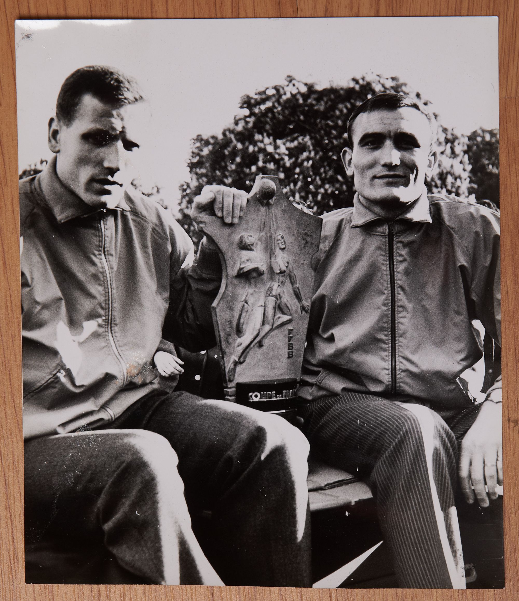 Christian Baltzer avec son équipier Pierre Cordevant lors de la parade en l’honneur de la victoire du SCM Le Mans en finale de la Coupe de France 1964. L’année où il fut élu co-MVP de Nationale 1.