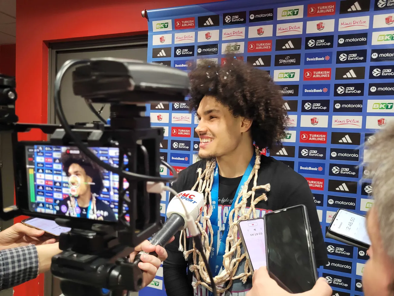 “En tout cas, ces confettis valent cher ! On a travaillé dur depuis août pour ça. Je sais pas si je vais me laver mais on va profiter au maximum de cette magnifique soirée. C’est un premier objectif accompli. On peut être fiers de nous. On travaille tellement dur depuis août pour ça, et pour toutes les victoires qu'on a su engranger ces dernières semaines, sur ces derniers mois. Je veux remercier tout le staff et tout le club. Je suis venu dans une organisation… qui ne pouvait pas être mieux ! On touche à être meilleurs tous les jours, tous les jours ! Je fais des progrès chaque jour, chaque semaine. Même après des grosses performances, on est derrière moi comme si j’avais fait un mauvais match.