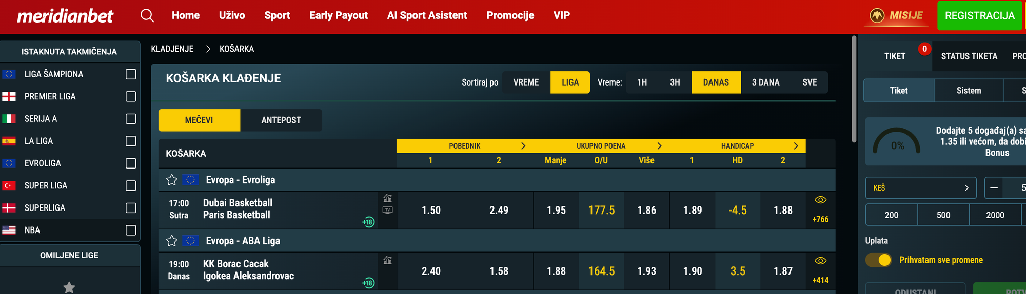 Košarkaške lige i takmičenja na koja se možete kladiti