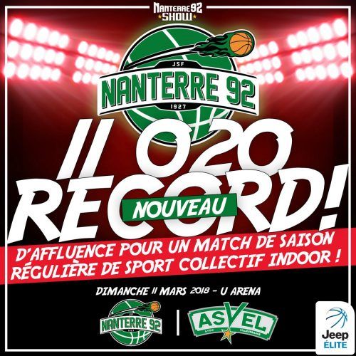 C’est fait! Nanterre 92 vient de battre le record de spectateurs pour une rencontre de saison régulière de sports collectifs dans une salle, en France.