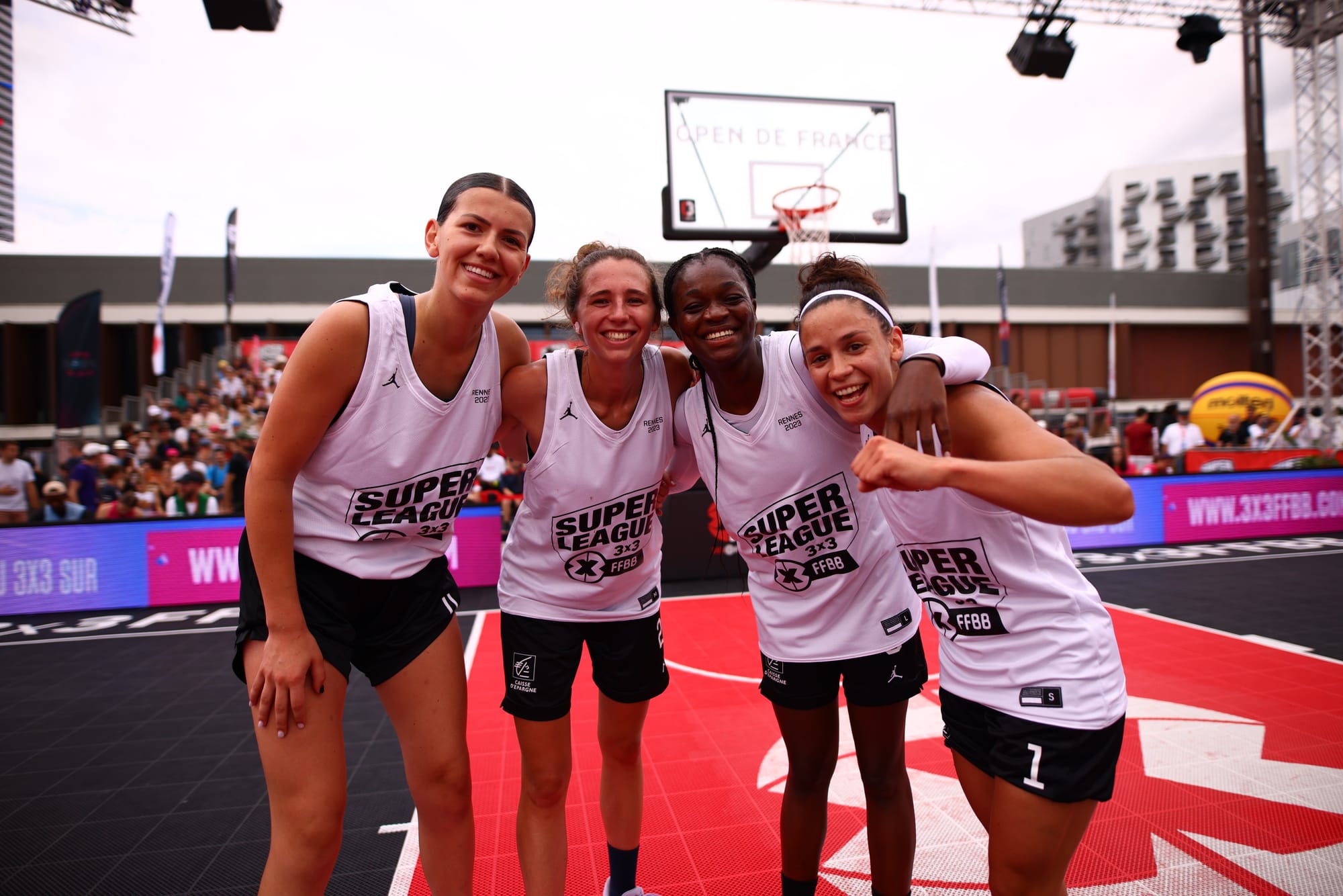 Le point d'orgue de la campagne 2023 de la Superleague 3x3 - la ligue estivale de la FFBB - était à la fête à Rennes. Installé sur l'esplanade Charles de Gaulle et devant plus de 1 700 spectateurs, les 32 meilleures équipes du circuit - 16 chez les hommes comme chez les femmes - ont rendu leur dernière bataille de la saison française. Un tournoi qui s'est déroulé entre les nuages et le soleil de Rennes et sous une ambiance chaleureuse des fans bretons comme des supporters des diverses équipes de l'Open.