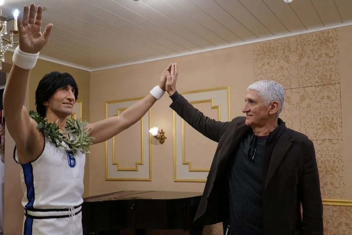 La statue s'inspire des moments de célébration de la grande victoire de l'équipe nationale grecque au Championnat d'Europe de 1987 à Athènes. Yannakis porte d'ailleurs la couronne de lauriers qui avaient été remise aux héros grecs ce jour de triomphe. L'ancien coach de l'équipe nationale grecque et du Limoges CSP vient de sortir une autobiographie et elle fait, paraît-il, un tabac dans les librairies du pays.