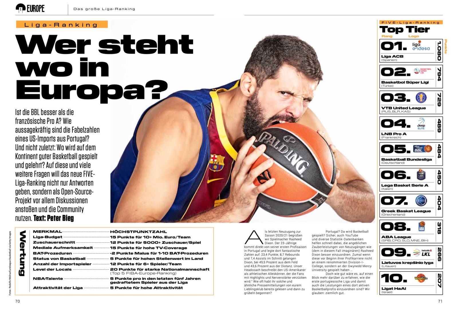 Quelles sont les meilleures ligues de basket-ball en Europe ? Le magazine allemand FIVE s’est attelé à la tâche pour établir un classement avec le concours du coach Adam Radomirovic, en décernant des points suivant différents critères, comme la couverture TV, les budgets, etc.