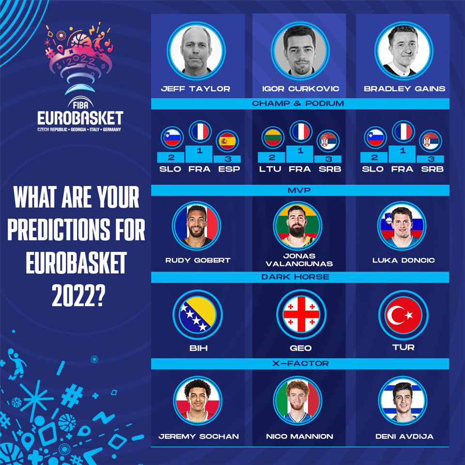 « J’ai toujours l’impression que les années 2020 vont être la décennie de la France », commente l’un d’eux, Igor Curkovic. « Le fait qu’ils devront affronter la Slovénie, la Lituanie et les hôtes allemands dans le groupe B sonne bien, car après ce genre de phase de groupes, les premiers pas de la phase à élimination directe pourraient ressembler à une promenade dans le parc. » « La France gagne. Leur force en profondeur est incroyable et il a été question d’imiter l’Espagne et de créer une dynastie européenne. Cela doit commencer quelque part en termes de titre après les podiums de la Coupe du monde et des Jeux olympiques, et l’EuroBasket 2022 pourrait être la plate-forme parfaite. Et que diriez-vous d’un remake de leur thriller de Tokyo avec la Slovénie – les champions en titre », ajoute Bradley Gaines.