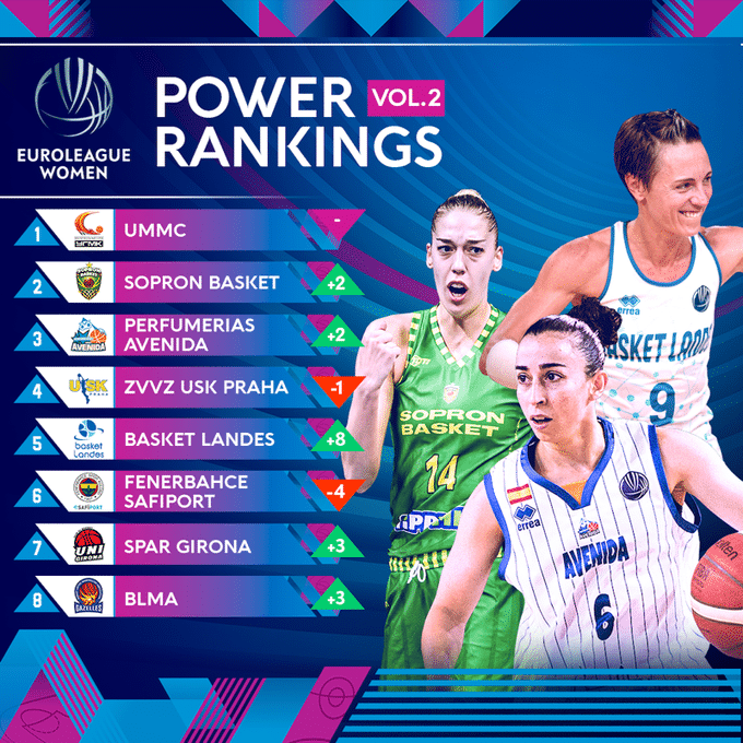 La FIBA a ajusté son power ranking (prédictions) de l’Euroleague féminine après 3 journées, et, surprise, Basket Landes gagne 8 places et se retrouve en 5e position après les cadors que sont Ekaterinbourg, Sopron, Salamanque et Prague. Lattes-Montpellier est classé 8e.