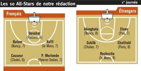 Nicolas Batum (Nancy) : 17 points, 5 rebonds, 6 passes, 3 interceptions, 7 fautes provoquées, 5 balles perdues, 20 d’évaluation.