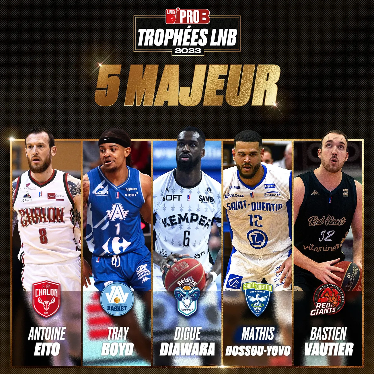 La Ligue Nationale de Basket (LNB) vient de révéler qui sont les joueurs qui figurent dans le cinq majeur de la saison 2022-2023 de Pro B. Parmi eux, quatre joueurs français !