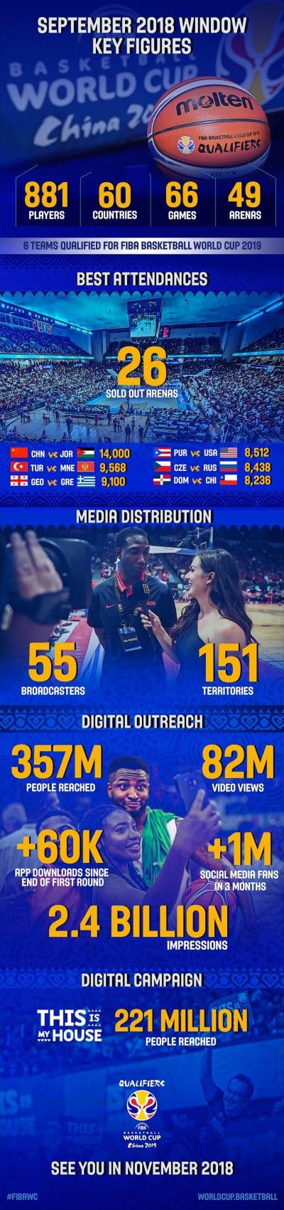 Depuis la fin du premier tour en juillet, il y a eu 60 000 téléchargements de plus de l’application ‘FIBA Basketball World Cup 2019’ et 1 million de nouveaux fans suivent désormais les comptes @FIBAWC sur Facebook, Weibo, Instagram et Twitter.