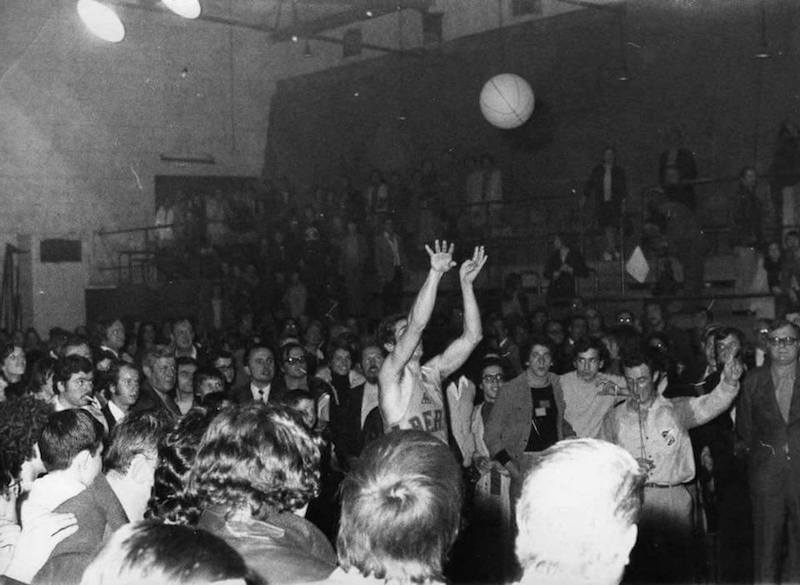 Cette photo est vraiment d’un autre temps quand il y avait d’autres mœurs. On peut regretter la passion qui parcourait les tribunes en ces temps-là, un certain folklore. Mais c’est quand même mieux que le basket soit devenu un sport civilisé.