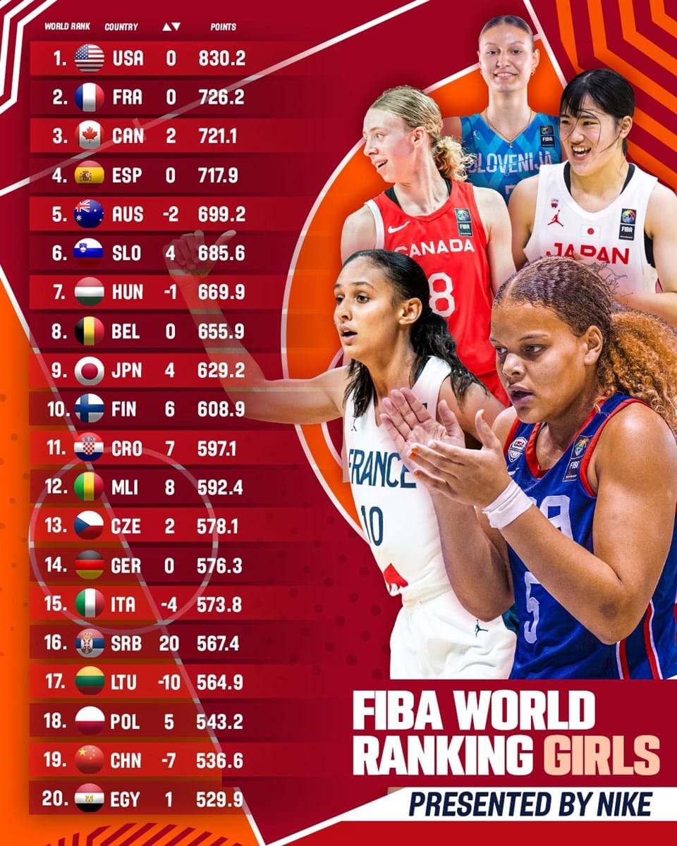 Comme en 2022, les Etats-Unis restent la puissance numéro 1 du basket féminin mondial. A l’instar des séniors, les jeunes Américaines ont tout raflé cette saison, y compris la Coupe du monde U19 à Madrid devant 7 000 spectateurs. Cela se traduit sans surprise dans la mise à jour du classement FIBA jeunes - qui prend en compte tous les résultats des compétitions internationales de U16 à U19 - en cette fin d’année 2023.