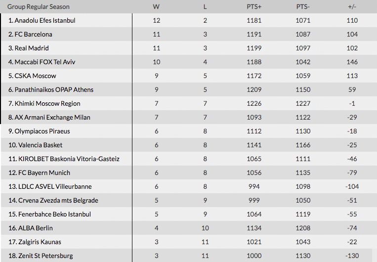 Toujours solide leader, l’Efes Istanbul a pu compter sur un Rodrigue Beaubois (16 points) en réussite pour battre le Zalgiris et renforcer sa 1ère place. Dans le même temps, le Maccabi Tel Aviv et le CSKA Moscou n’ont pas fait dans le détail face à l’Etoile Rouge et au Zenit St Pétersbourg.