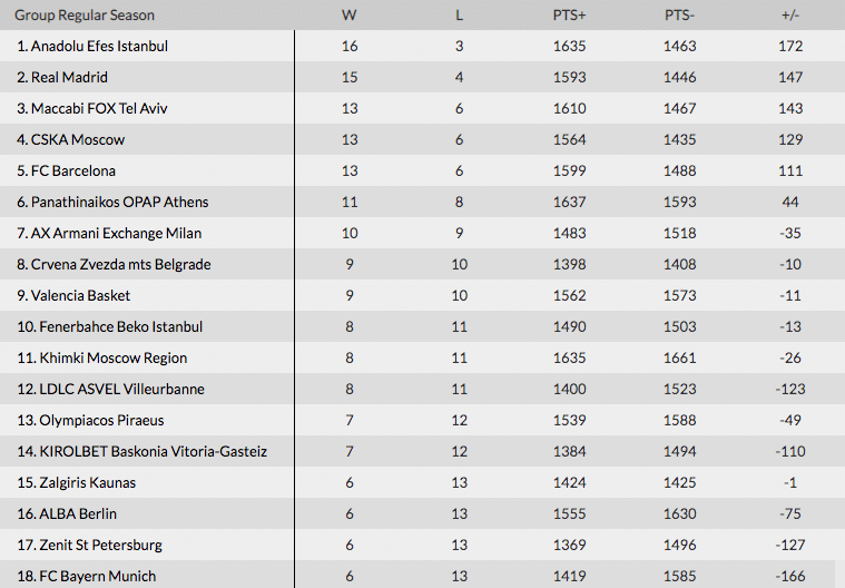 C’était l’affiche de cette 18e journée entre l’actuel tenant du titre et son prédécesseur. Fort de sa série de 13 victoires de rang, le Real a bien débuté avant de craquer en 2e mi-temps, tenu à 22 points marqués en 20 minutes. Pour deux équipes qui aiment jouer l’attaque, ce sont pour le coup les défenses qui ont largement pris le pas dans ce match de tranchées (60-55).