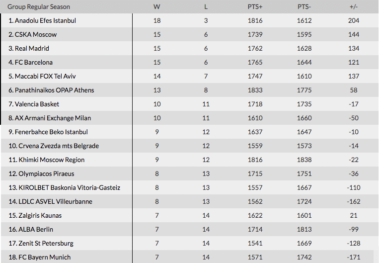 Dans le duel au sommet de cette 21e journée, l’Efes Istanbul a confirmé sa domination cette saison en allant s’imposer sur le parquet du Real Madrid (80-75).