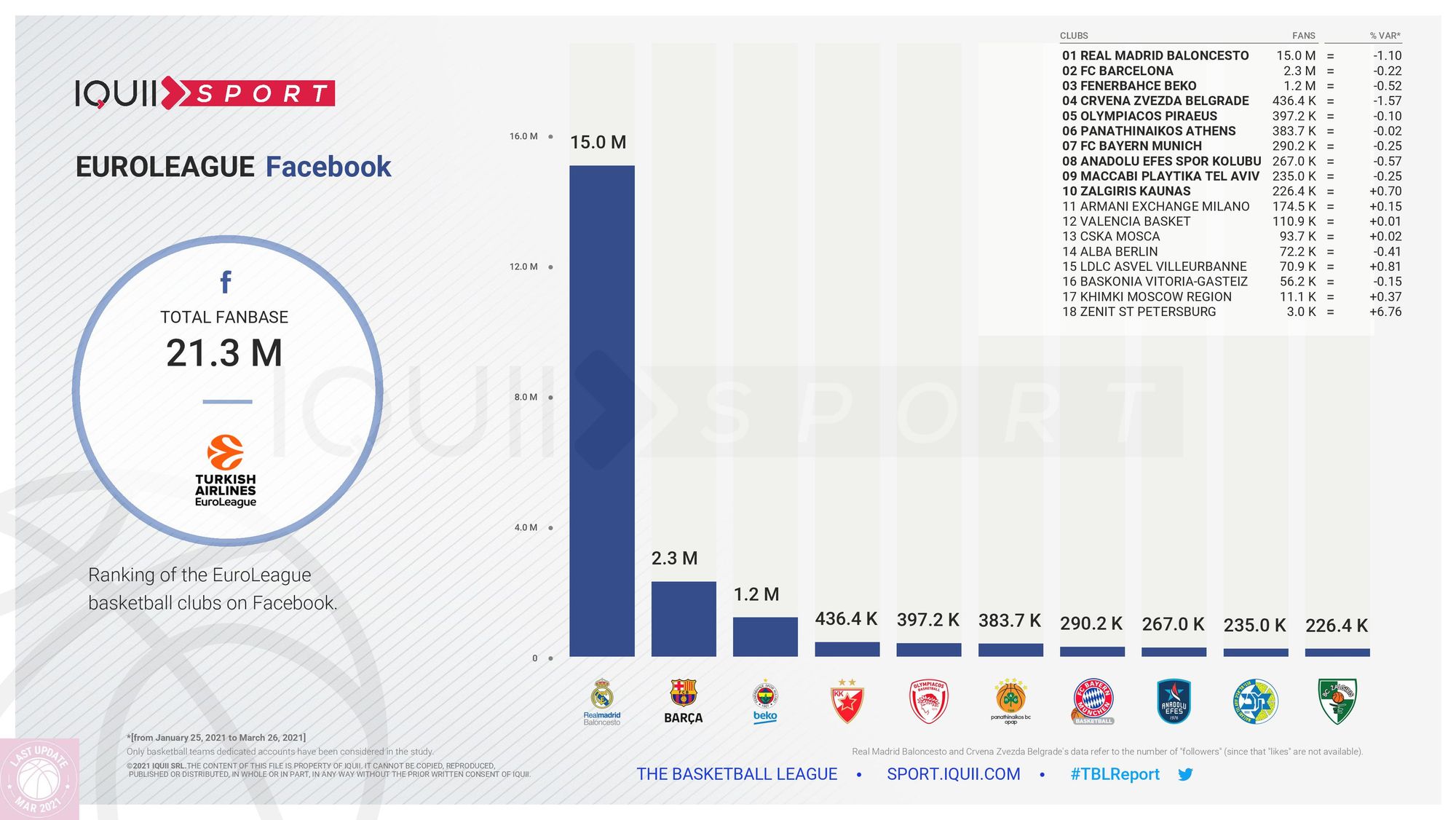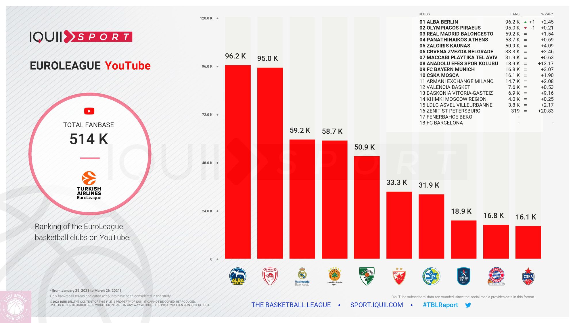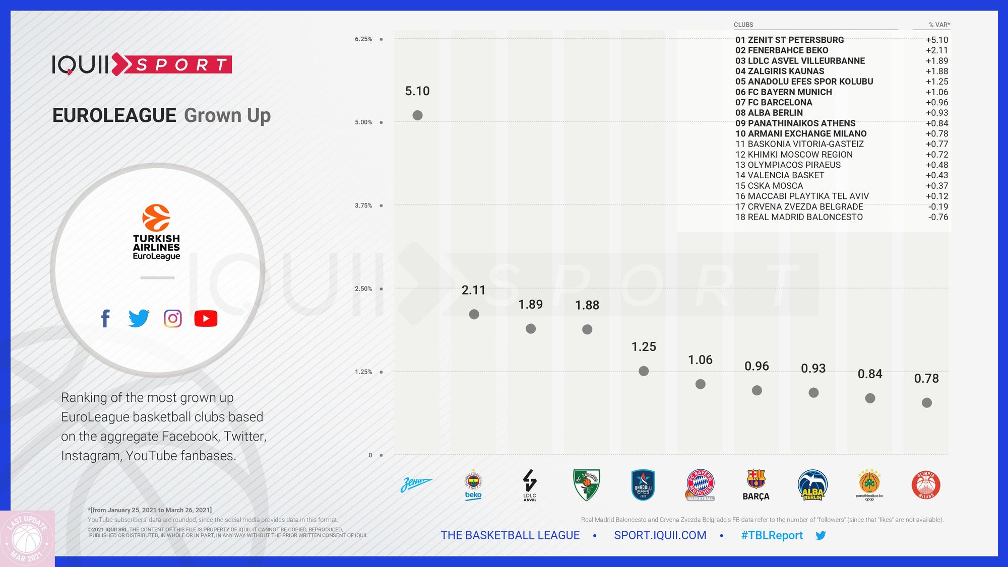 La place de l’ASVEL sur les réseaux sociaux en Euroleague (16e) est à peu près la même que celle qui est la sienne sur le terrain sportif (14e). C’est le constat effectué par Iquiii Sport. Mais, bonne nouvelle, le club de Tony Parker est sur la bonne pente, au point d’être classé 3e en matière de progression.