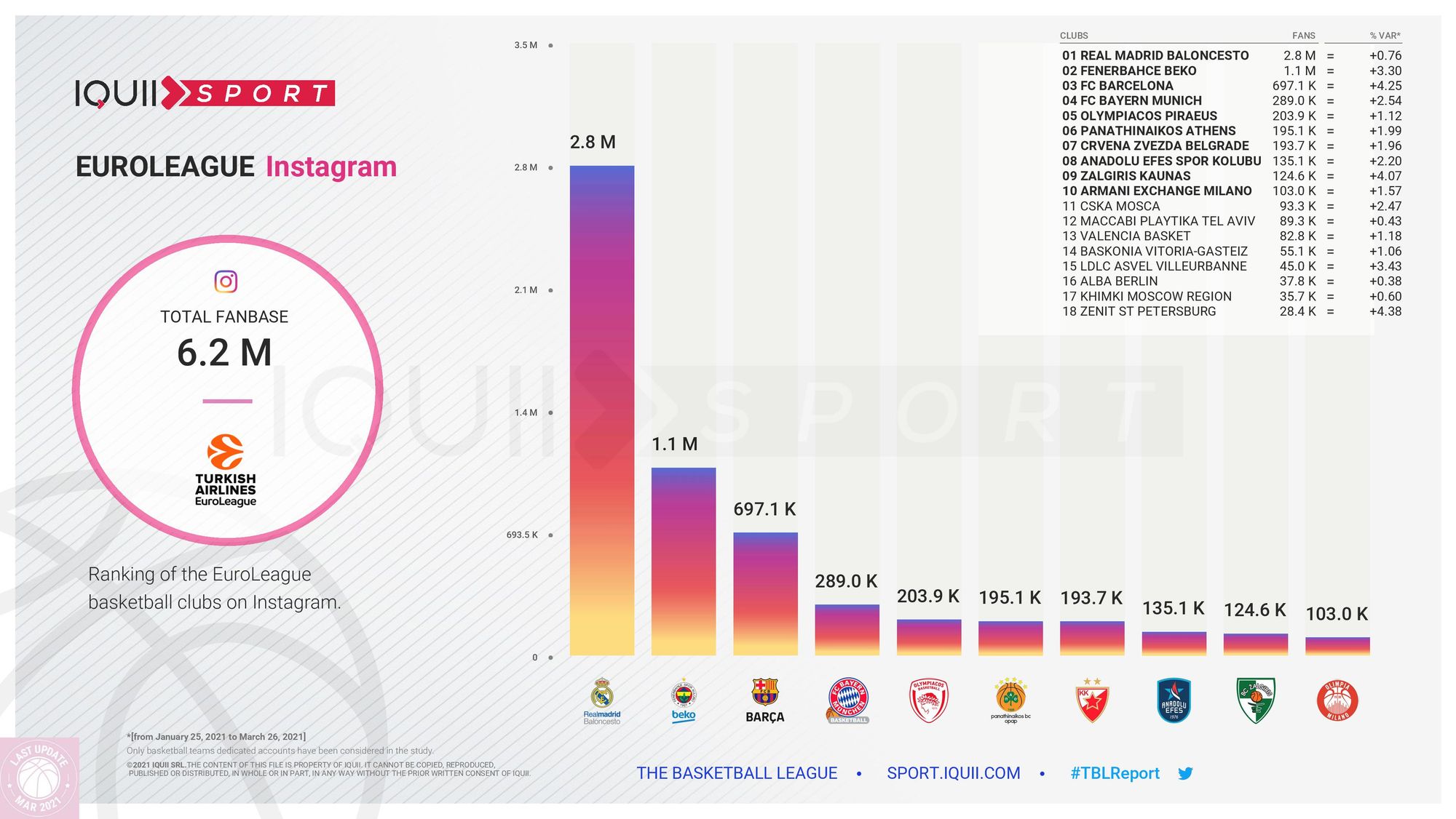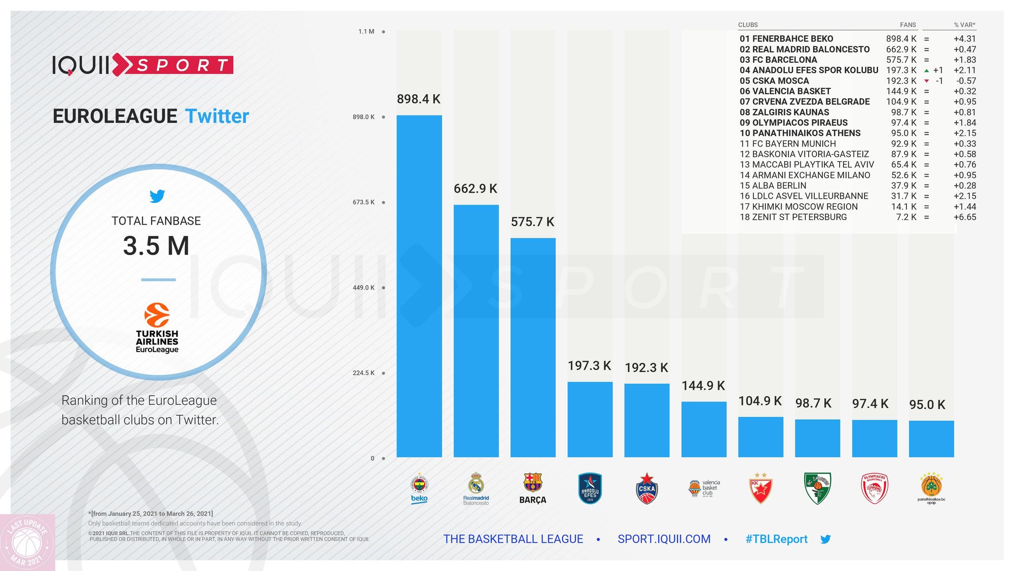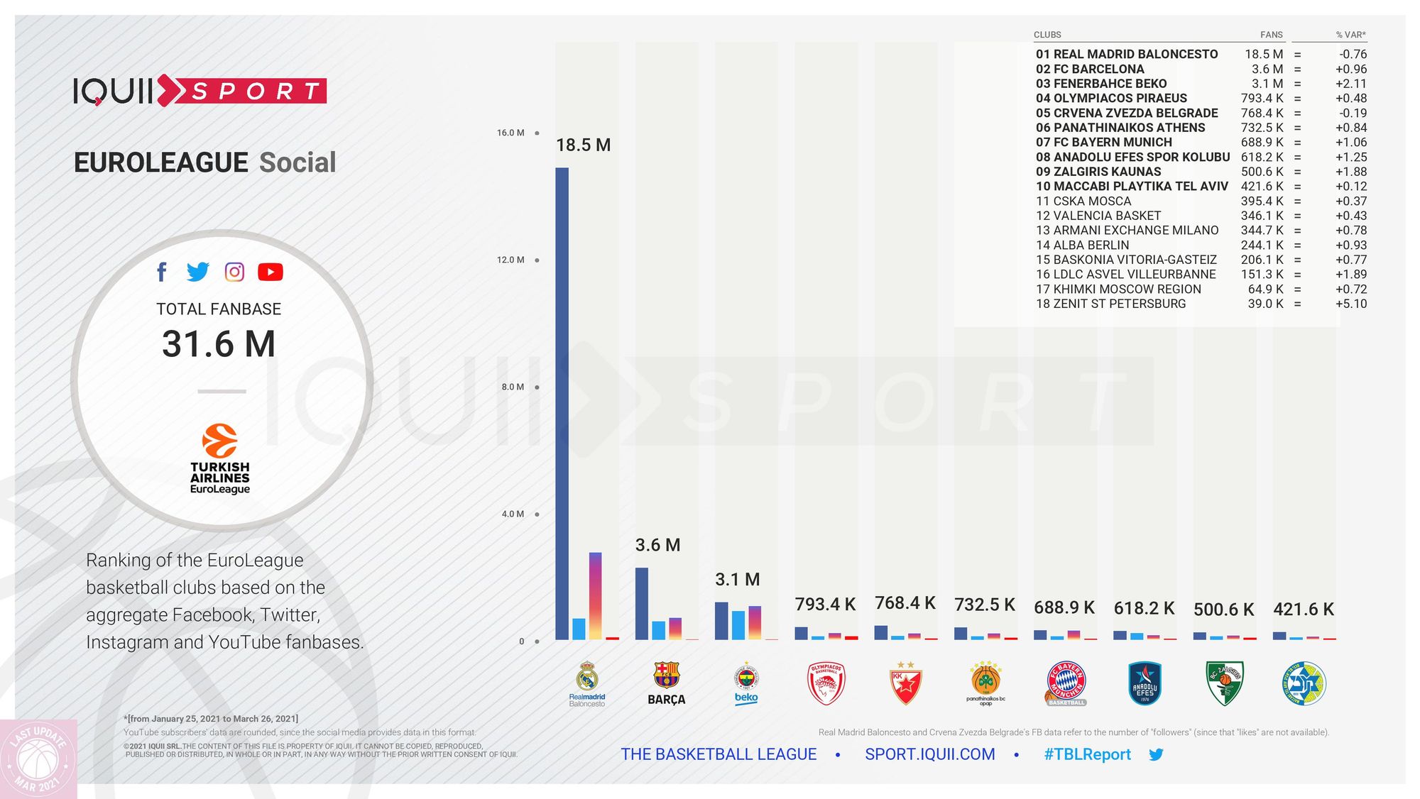La place de l’ASVEL sur les réseaux sociaux en Euroleague (16e) est à peu près la même que celle qui est la sienne sur le terrain sportif (14e). C’est le constat effectué par Iquiii Sport. Mais, bonne nouvelle, le club de Tony Parker est sur la bonne pente, au point d’être classé 3e en matière de progression.