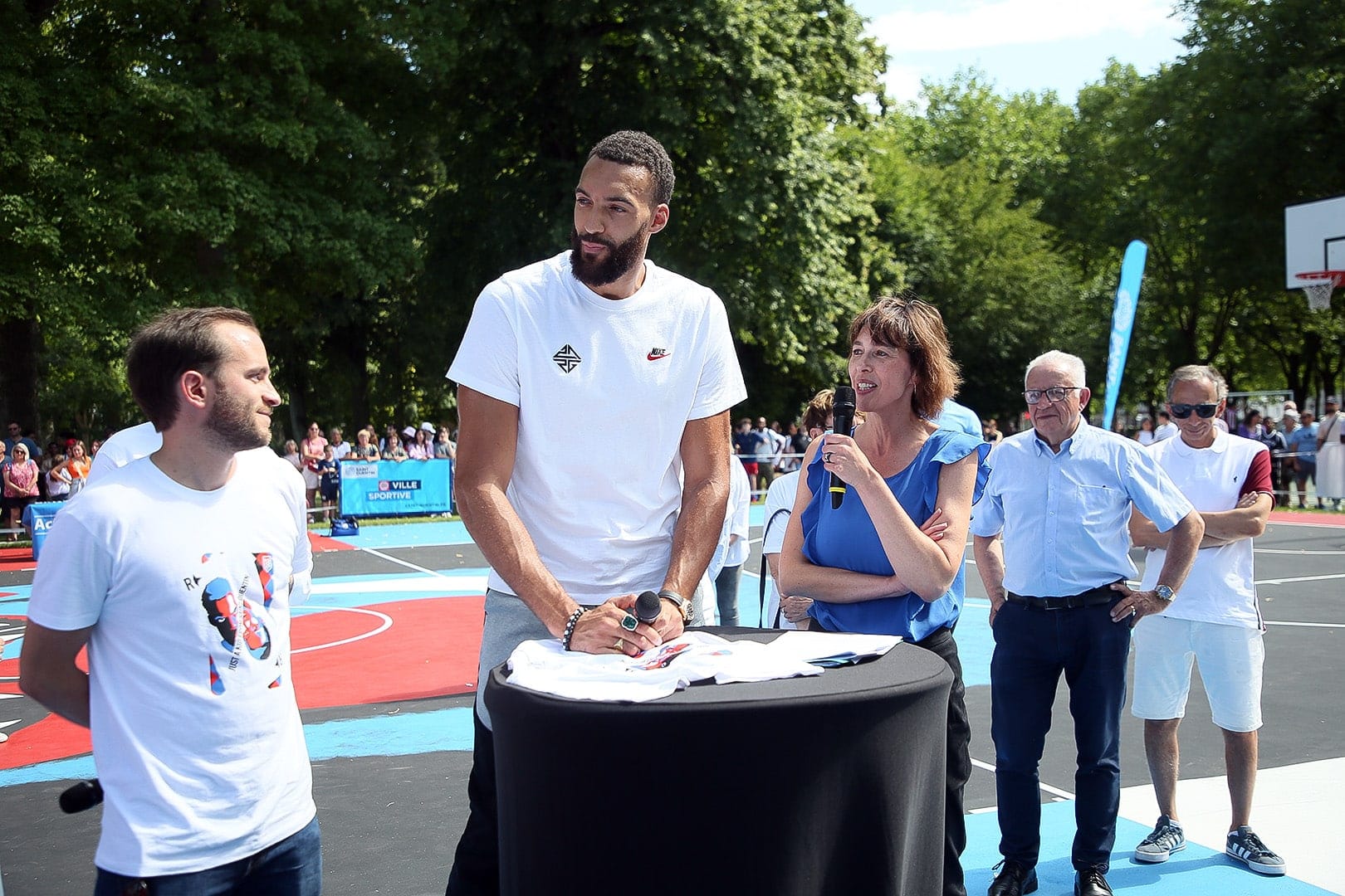 Rudy Gobert a participé à l'inauguration de deux terrains de basket à Saint-Quentin, sa ville natale, qui portent son nom.