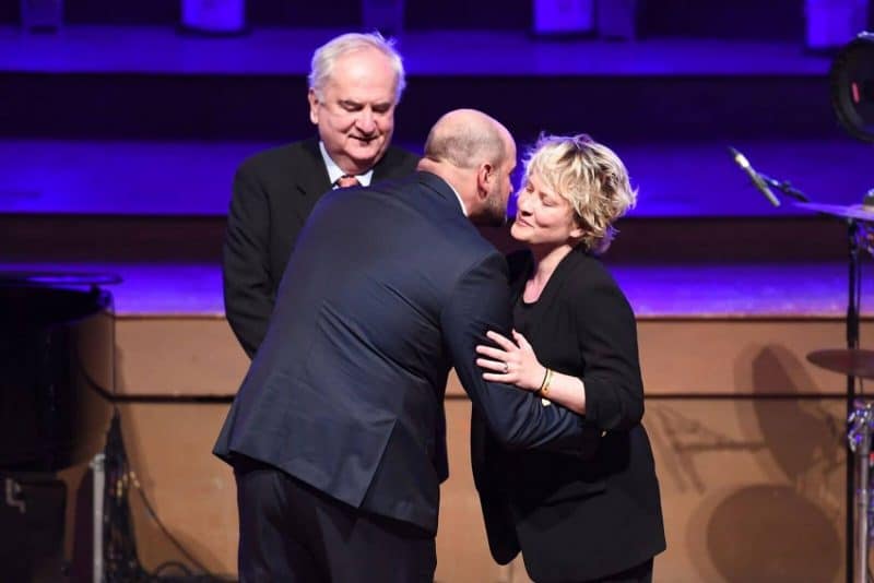 Elu une deuxième fois Coach de l’Année de la Jeep Elite, Zvezdan Mitrovic (Monaco) s’est vu remettre son trophée par Bozidar Maljkovic, entraîneur du Limoges CSP champion d’Europe 1993 et sa fille Marina, ex-coach de Lyon et de nouveau coach de l’équipe de Serbie féminine. Ils ont pu discuter ensemble en serbo-croate.