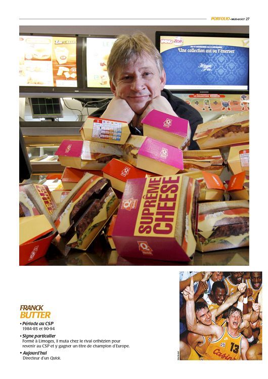J’ai été consultant sur Pathé Sport pour les matches de basket. Je faisais le bord terrain, notamment au All-Star Game. Ce n’était pas évident. Mais je crois que je n’ai jamais trop voulu rester dans le milieu du basket même si j’avais le projet éventuel d’intégrer le club. Mais comme en 2000 ça s’est cassé la gueule… Donc je me suis fait un nettoyage de la cheville et j’ai fait une formation à l’AFPA. J’ai fait une remise à niveau… Le mien était bas (rires). J’ai fait une formation de vendeur délégué commercial pendant huit mois. J’ai eu le diplôme. Je suis rentré chez Paru-Vendu pour vendre de l’espace publicitaire à Limoges. C’était agréable car je rencontrais des anciens dirigeants ou des gens qui continuaient à aller au basket. J’avais une Smart comme voiture et tout le monde rigolait en me voyant. Après, j’avais un ami en commun, le franchisé de Quick, qui en ouvrait un autre. Il recherchait un directeur et il m’a demandé si ça m’intéressait. Je n’y suis pas allé tête baissée, parfois je me pose trop de questions. On a discuté. J’ai dit OK mais avec une période d’essai de trois mois. J’ai fait des burgers pendant trois mois et certaines personnes me voyant disaient que j’étais descendu bien bas. Les plus âgés ce sont les managers, ils ont trente ans et moi j’en avais quarante-deux. C’est super intéressant et je remercie la personne qui m’a tendu la perche. Je suis directeur. Je ne me suis jamais lancé comme propriétaire d’un restaurant par peur de foutre tout en l’air ce que j’avais construit.