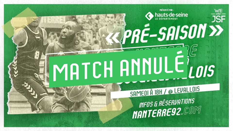 « Suite à une suspicion de cas de COVID-19 dans l’effectif nanterrien, le match de cet après-midi sur le parquet de Boulogne-Levallois est annulé afin de garantir la sécurité de tous. Dans le cadre du protocole de prévention sanitaire mis en place conjointement par Nanterre 92 et la Ligue Nationale de Basket, l’ensemble de l’effectif et du staff sera à nouveau testé en début de semaine. »