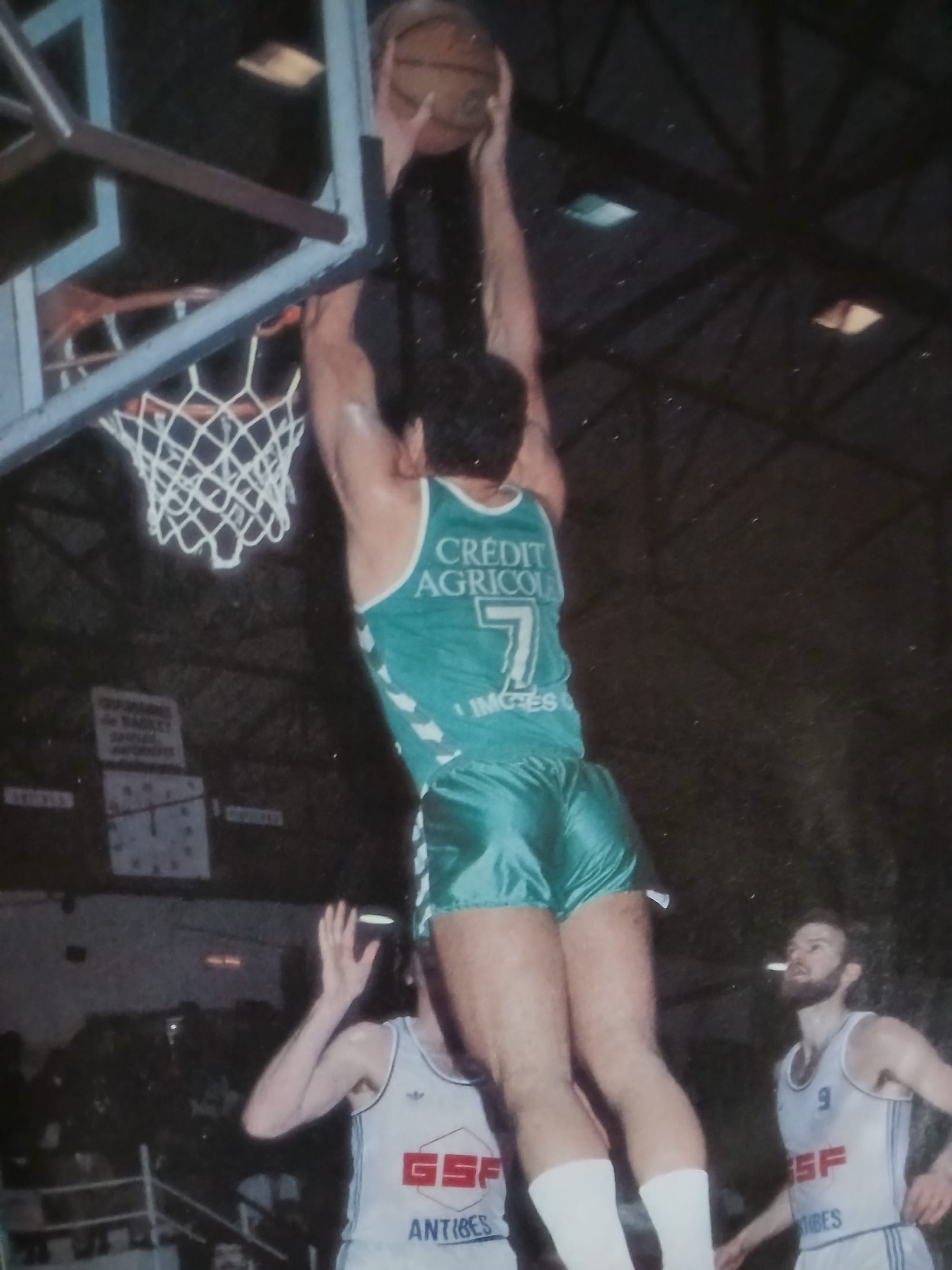 A côté, son palmarès collectif est maigre avec seulement deux titres de champion de France avec Le Mans. Il a eu le tort d’être né trop tôt sinon il aurait pu prétendre à un rang de star en NBA. Un accident de la circulation a brisé sa carrière d’entraîneur alors qu’il était celui de Nancy et a failli lui coûter sa vie. Tout ceci est raconté dans un livre au titre évocateur, « Une vie en suspension ». Une icône.
