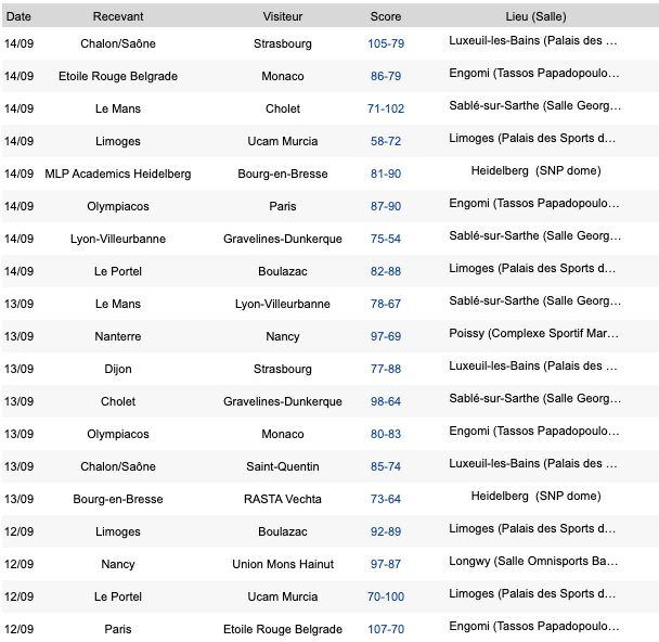Tous les résultats de Betclic Elite et de Elite 2 sont ici.