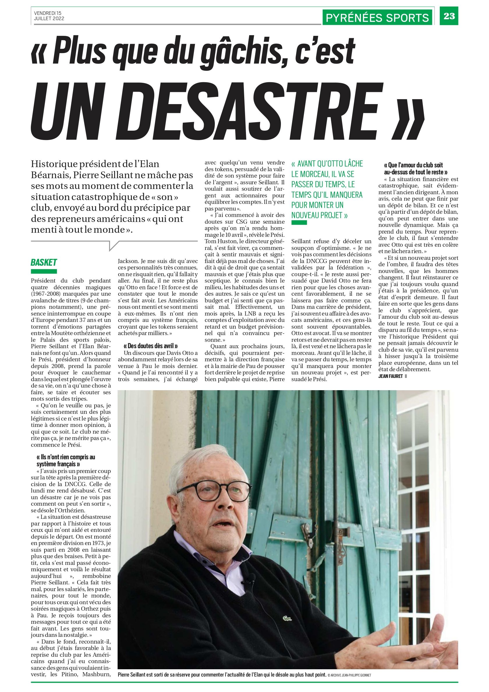 On a été très présent sur le dossier CSG puisqu’on a été les premiers à annoncer leur arrivée… et leur départ, avec les raisons de ce départ. J’ai pas mal creusé, et à l’époque où ça tournait mal, j’ai sorti tous les déboires judiciaires de David Otto, le boss de CSG. Ça remonte à une dizaine d’années, il avait été condamné à 400 000 dollars d’amendes pour fraudes. J’avais sorti ça la semaine des élections législatives. Du coup, les relations étaient super tendues à l’époque. Pinero, il s’est tellement répandu à dire tout et n’importe quoi qu’on n’a pas réagi au quart de tour à tous ses tweets, à toutes ses attaques. Evidemment, on a donné la parole aux uns et aux autres pour déchiffrer le pourquoi du comment. C’est Sud-Ouest qui s’est retrouvé un peu le porte-parole de Pinero. On est resté prudent, à ne pas prendre tout au pied de la lettre car c’est vite devenu un espèce de défouloir, d’attaques personnelles… Après le dernier match, c’est David Otto qui nous envoie carrément tous les comptes de l’Elan avec les annotations.