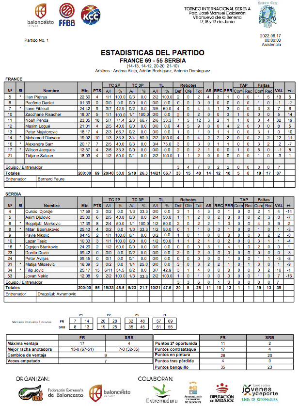 Au Torneo Internacional de Villanueva de la Serena, les U17 français se sont largement imposés à la Serbie, 69-55.